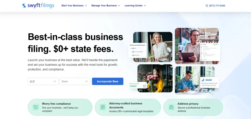 In 2025, Swyft Filings remains popular, especially among new business owners who want a smooth filing process without needing legal knowledge. That said, some users feel the upsells are persistent, and ongoing costs—like registered agent services—are higher than average.