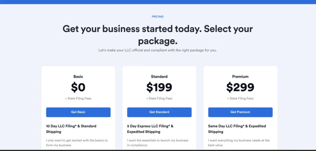 - Basic: $0–$49 plus state filing fees